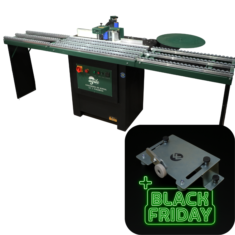 Possui um destopador manual para o corte das fitas rente à borda da madeira, dispensando, assim, o sistema pneumático. Possui controlador digital de temperatura. Outros grandes diferenciais são suas mesas roletadas. Além de proporcionar uma área de trabalho 2,5 vezes maior, os roletes garantem uma melhor operação, evitando a fadiga do operador. O sistema de duplo coleiro é acionado por sensores, ou seja, a máquina irá detectar automaticamente o coleiro que estiver em posição de trabalho, fazendo o aquecimento do mesmo.