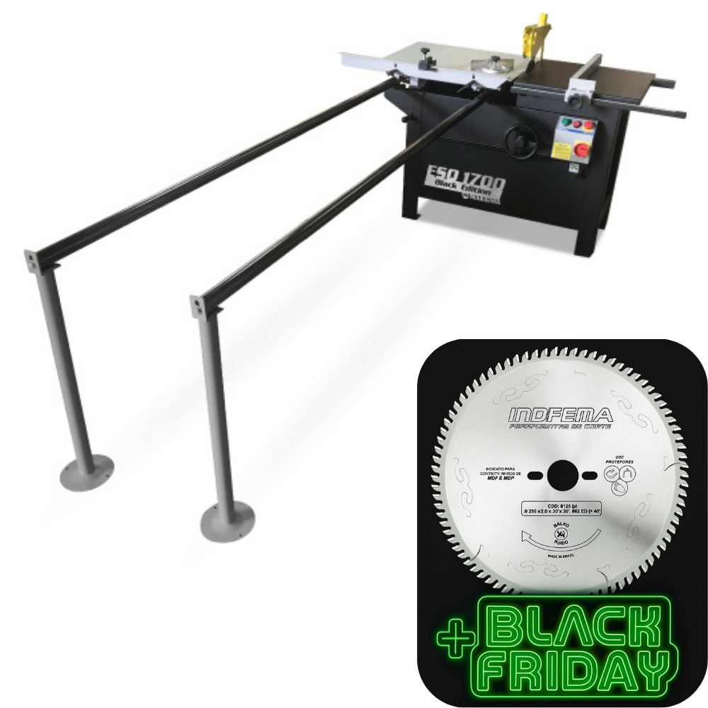 Com dimensões reduzidas e estrutura leve a ESQ.1700 MAKSIWA atende a necessidade da marcenaria de pequeno porte. Tendo uma excelente relação custo-benefício, ela esquadreja, destopa e alinha tábuas de madeira maciça, MDF, compensados, plásticos e acrílicos; sem deixar a desejar tanto no acabamento quanto na precisão do corte. Possui mesa com capacidade de corte de 1700 mm. Possui Guia EXAKTA de Aperto Rápido – um projeto exclusivo MAKSIWA. Sistema prático e confiável de regulagem para o corte de chapas. Garanta qualidade e produtividade em sua marcenaria com a ESQ.1700 BLACK EDITION.